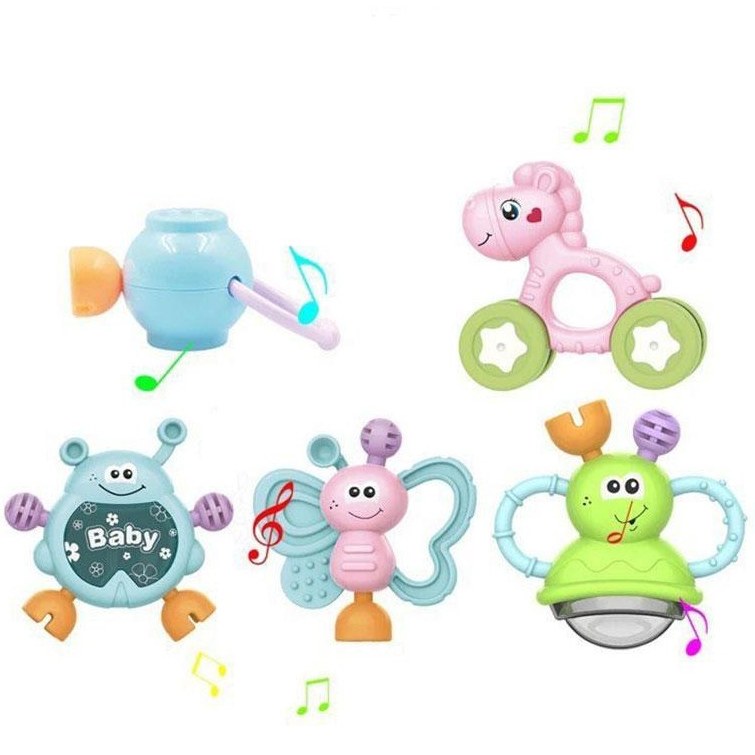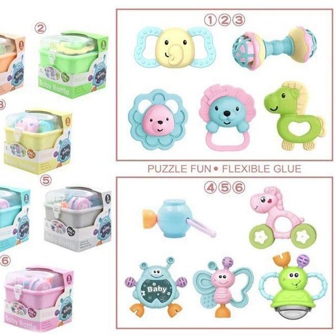 ست جغجغه و دندانگیر صندوقی 5 عددی 6 رنگ